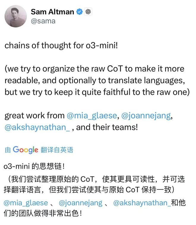 不过有一说一, OpenAI 从 o1 藏得严严实实,到 o3-mini 半公开思维链,已经算是不小的进步了。