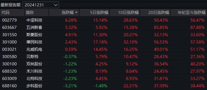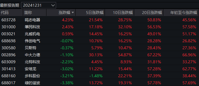 如年内涨幅达46%和45%的鹏华碳中和主题(下一)、永赢先进制造智选(下二),截至2024年底的持仓都机器人板块。