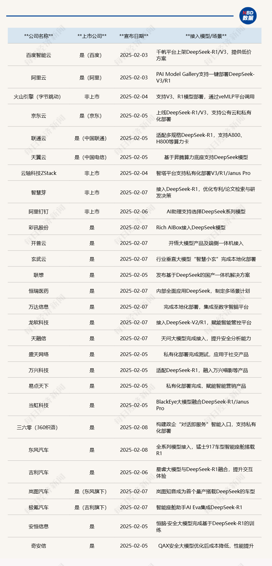 (1)行动层面:国内公司接入DeepSeek模型成“标配”