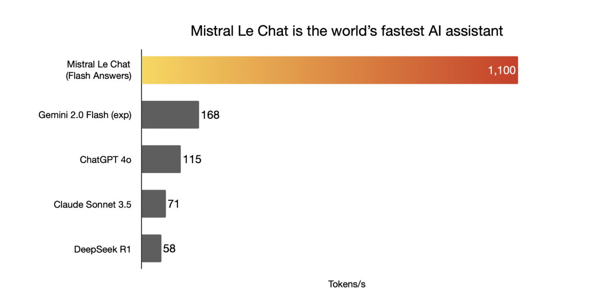 这一速度背后,是Cerebras公司为其提供的计算能力。根据Cerebras的声明,Le Chat是世界上最快的人工智能助手,领先于OpenAI和DeepSeek。