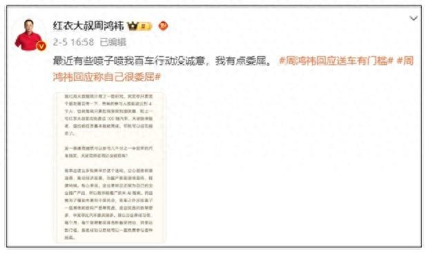 然而,尽管周鸿祎在直播中详细解释了送车活动的合理性和诚意,但仍有部分网友对此次活动持怀疑态度。他们认为,活动的核心目的并非回馈用户,而是为了为360旗下产品纳米AI搜索拉新用户。对于这些质疑,周鸿祎曾在微博上表示自己“有点委屈”,并再次详细阐述了送车活动的规则和目的,强调活动的真实性和对用户的回馈。