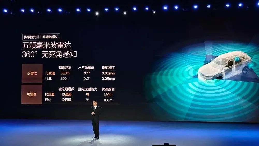 除了智驾芯片和激光雷达这两块“硬骨头”,杨冬升在发布会上或明或暗地透露了比亚迪在其他传感器上已经实现自产自销的能力。例如在纯视觉方案中非常重要的毫米波和超声波雷达,比亚迪自己生产的版本甚至在性能上比行业成品更优秀。