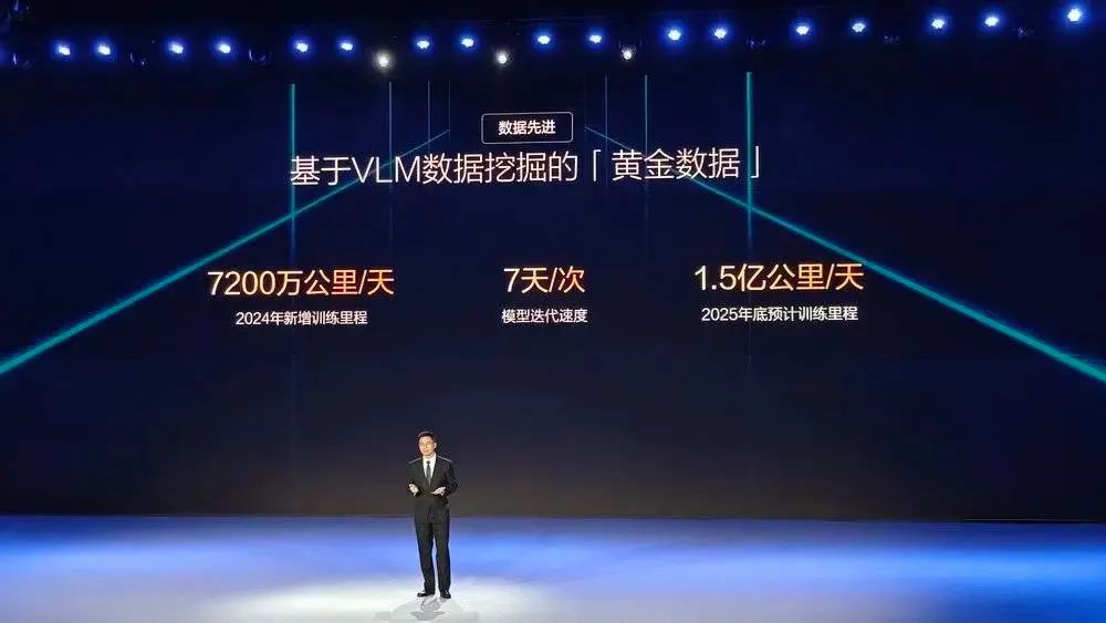 根据王传福在发布会上简单透露的信息,目前比亚迪已经自建超算中心(规模大小不明),2024年每天的新增训练里程已经达到7200万公里。特斯拉去年年底公布的参考值为每天训练1.4亿公里,差不多刚好是比亚迪的两倍,2025年底比亚迪也将达到接近于特斯拉2024年底的训练能力水平。