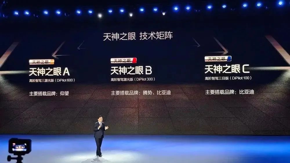 在2023~2024年间,比亚迪已经在高端产品中对不同硬件规格、不同供应商、不同技术路线进行了充分的“摸索”。这部分成果,最终转化为了此次发布会“天神之眼”体系中更高端的A和B方案。