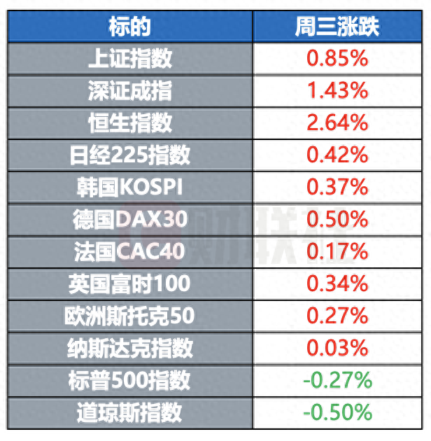 全球主要指数周三多数收涨,美股三大指数仅纳指微涨,道指和标普500指数均小幅收跌。