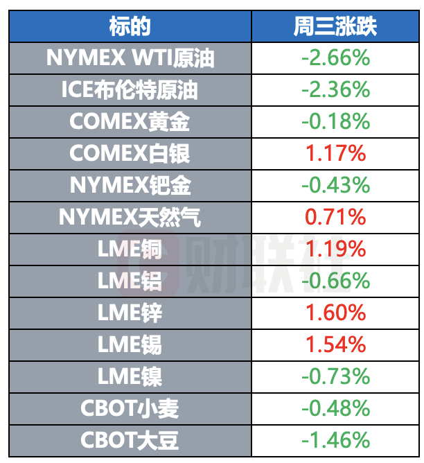 COMEX黄金期货收跌0.18%,报2927.3美元/盎司;COMEX白银期货涨1.17%,报32.7美元/盎司。