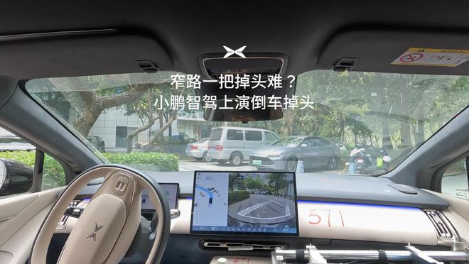 视频显示,支持智驾倒车掉头的小鹏汽车支持边看边掉头、避让电单车等功能,还可在停车场 U 形入口完成倒车掉头、一键倒车脱困。