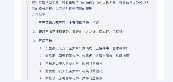 更亮眼的是,如果你觉得这样的查询结果分析起来还是不明了,还可以让它根据从网上搜来的信息,划分主要神祇的层级关系。