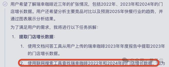 其回答过程是先对用户核心需求进行分析将问题划分步骤,然后调用工具进行搜索思考整理,最后思考完成输出结果。