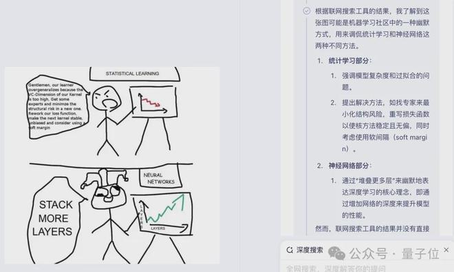 另外,还可以上传图片让它结合网络信息解读,梗图也能看懂。