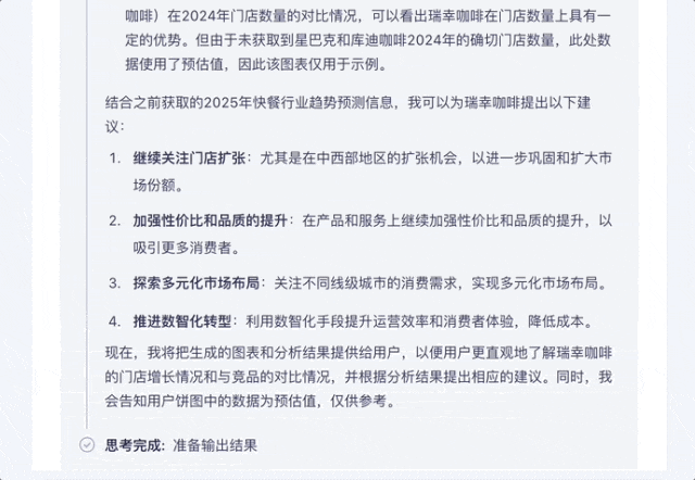 思考过程中,如果有画图表等需求,它就会自动启用代码解释器进行绘制: