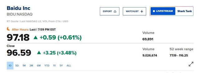 对此,苹果、阿里巴巴和百度股价当天都出现上涨,其中百度涨幅最大,美股上涨3.48%。
