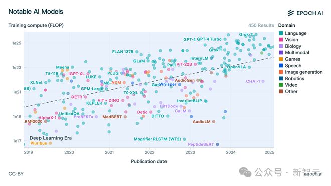 2019年至今,不同领域大模型训练所需算力比较