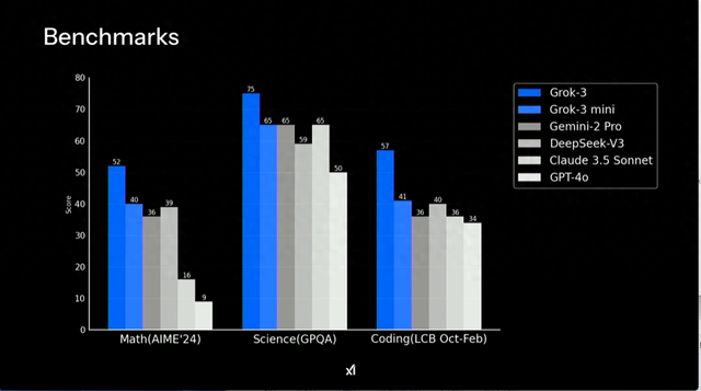 马斯克在发布会现场表示,Grok 3在很短的时间内超越了上一代Grok 2,“我们认为它比Grok 2强大一个数量级”。另据xAI公司的工程师介绍,Grok 3所涉及的训练是Grok 2的10倍。