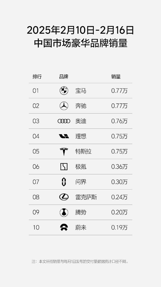 2月18日,理想汽车公布了2025年第七周(2.10-2.16)的销量排名榜单。而在造车新势力的排名中,再度发生变化,尤其是头名的争夺更加激烈。