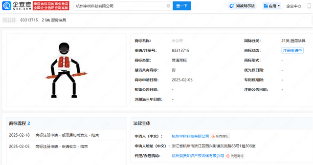 从产业上来看,人形机器人时代似乎真的近了。企查查APP显示,近日,宇树科技申请注册一枚“春晚机器人”样式图形商标,国际分类为厨房洁具,当前商标状态为注册申请中。