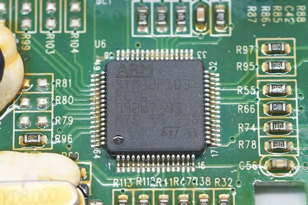 主控MCU来自意法半导体,型号STM32F103RCT6,内部集成了Cortex-M3 32位RISC内核,频率为72MHz,内置256KB FLASH,具有USB接口和CAN总线接口,具备I2C和SPI等多种接口,采用LQFP64封装。