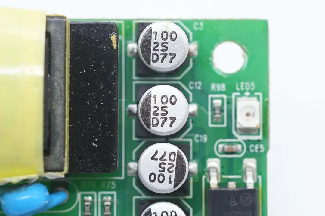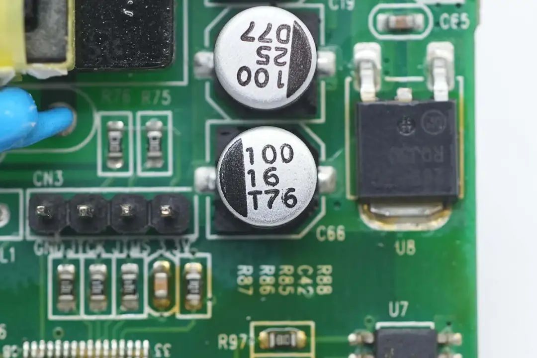 两颗滤波电容来自凯美,规格为1000μF25V。