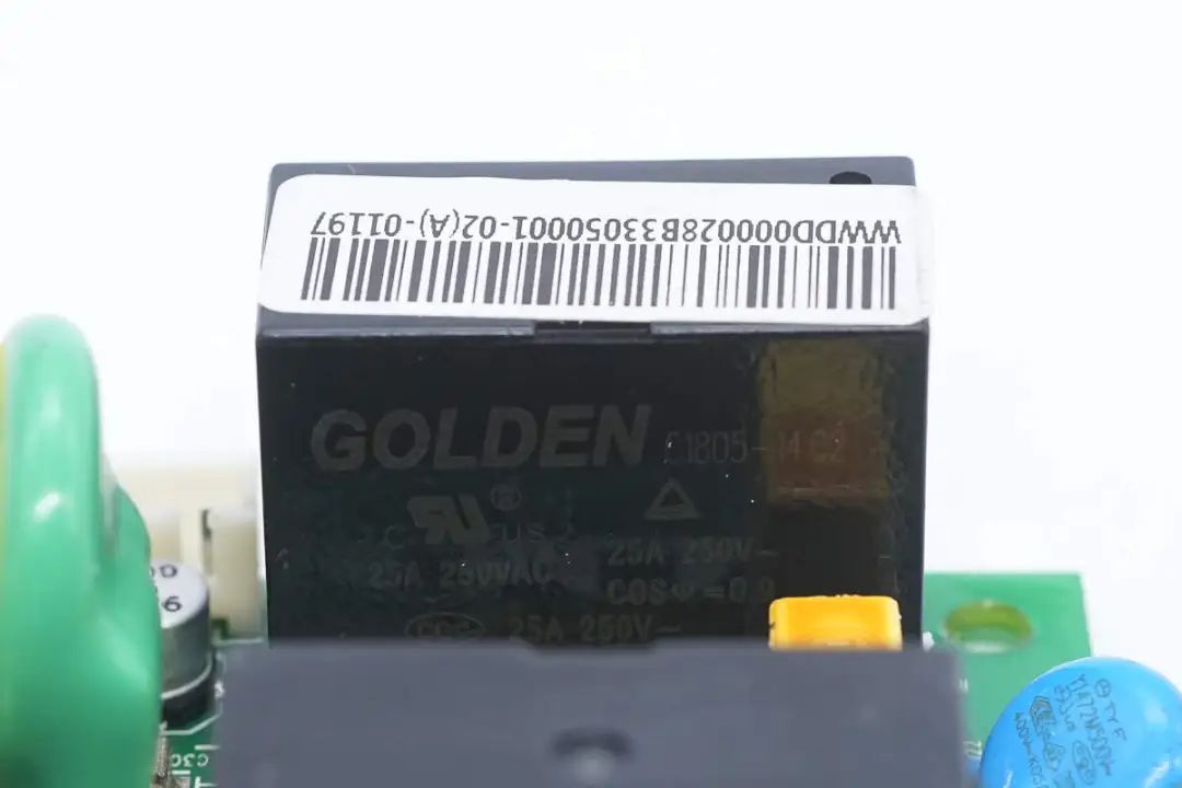 用于输出控制的继电器来自高登,型号GT-1A-12D,为大功率继电器。内置一组常开触点,触点材料为银合金,触点容量为25A,线圈电压12V,采用印制板式引出脚。