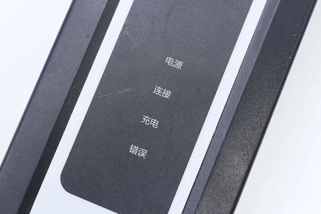 四颗指示灯分别对应电源指示,连接状态指示,充电状态指示和错误指示。