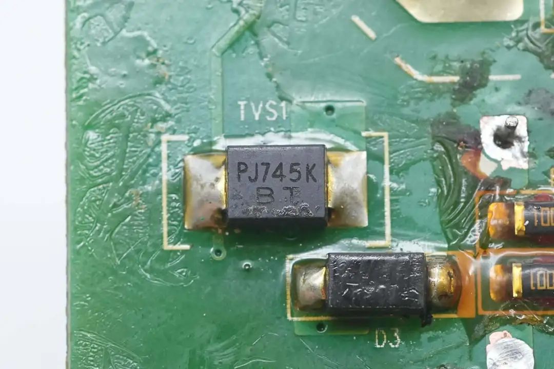 TVS来自强茂,型号SMAJ18CA,用于过压浪涌保护。