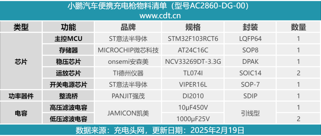 最后附上小鹏汽车便携充电枪的核心器件清单,方便大家查阅。