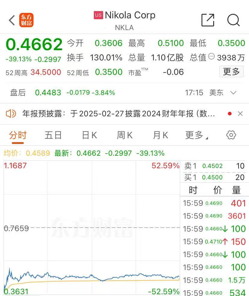 值得一提的是,当地时间2月19日,“卡车界特斯拉”美国知名新能源汽车厂商Nikola宣布申请破产保护。当天美股开盘后,公司股价一度下跌超过50%,截至收盘仍跌约40%。