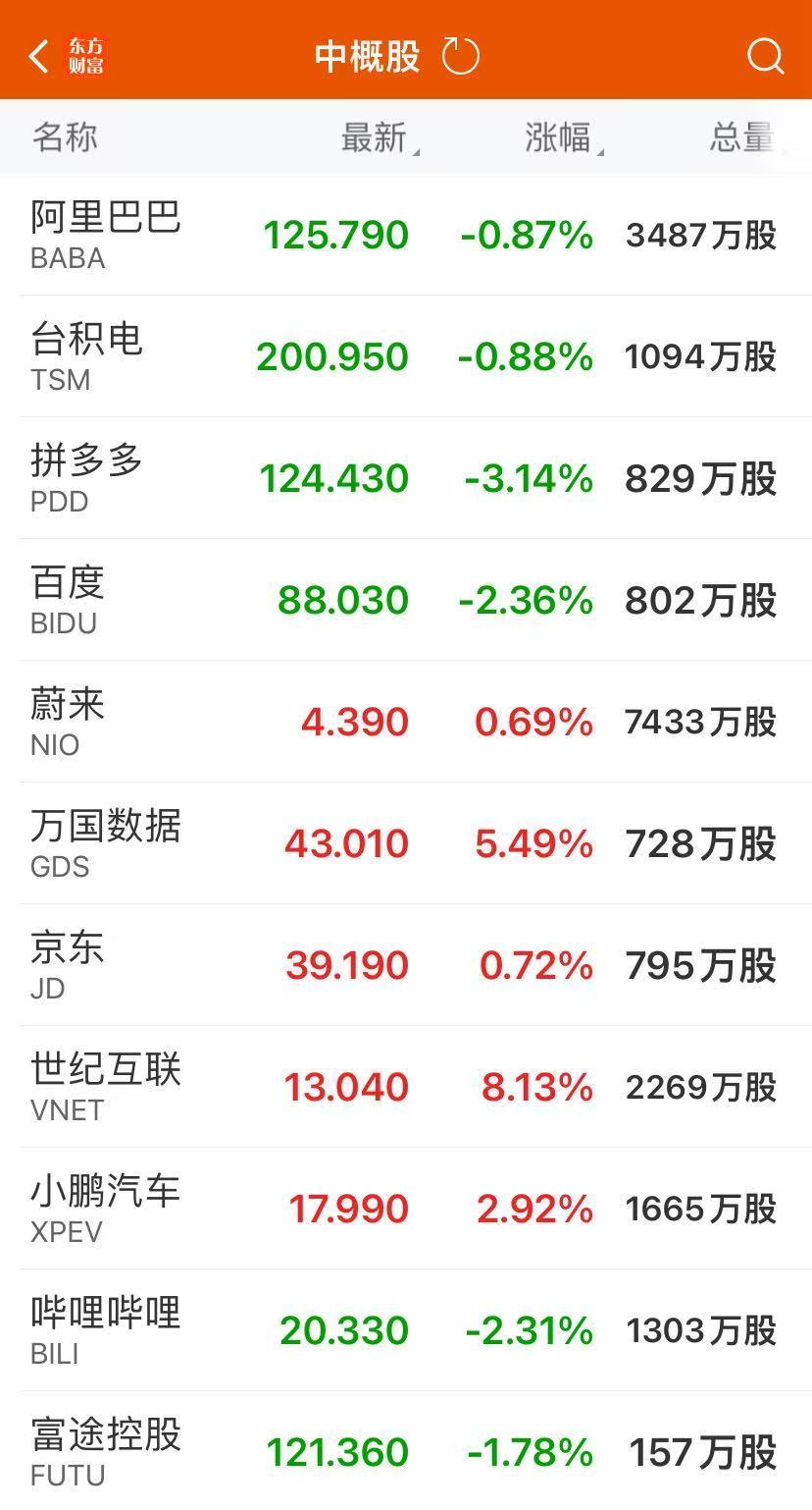 热门中概股涨跌不一,纳斯达克中国金龙指数收跌0.38%。