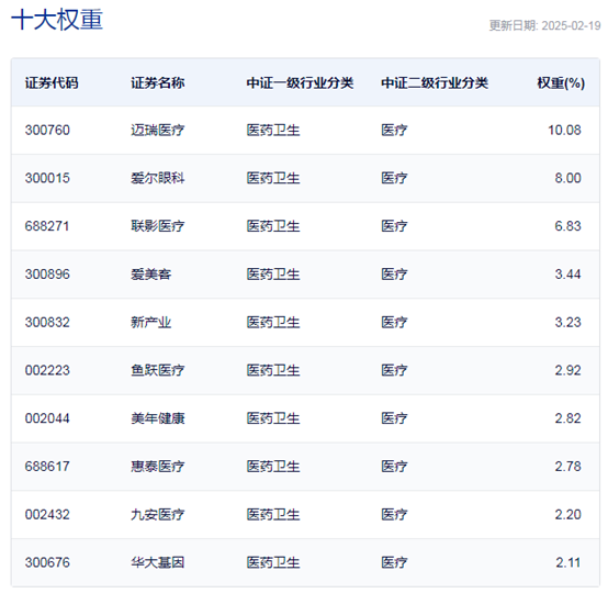 中证全指医疗保健设备与服务指数主要权重股