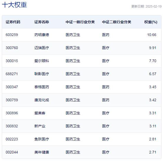 中证医疗指数主要权重股