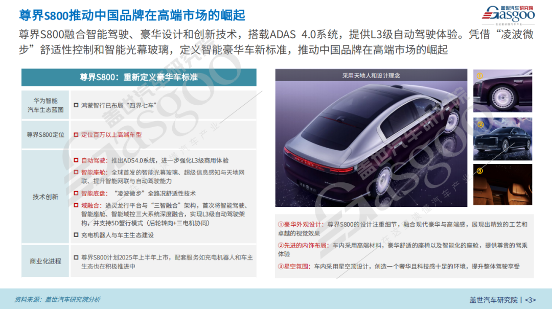 尊界S800计划于2025年上半年上市,同时积极推进配套服务如充电机器人和车主生态建设,为用户提供全方位的高端服务体验。随着尊界S800的推出,中国品牌在高端汽车市场有望凭借技术创新与豪华体验,与国际品牌展开有力竞争,引领中国高端汽车市场的新发展。