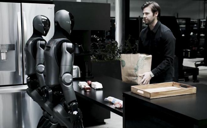 在演示案例中,两台模型权重相同的Figure机器人需要面对一堆首次见到的杂物,自行决定应该放在柜子、冰箱、盆子等收纳位置。
