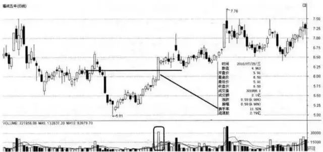 由于个股的流通盘的大小不一,仅仅用成交金额的简单比较意义不大。在考察成交量时,不仅要看成交股数的多少,更要分析换手率的高低、高换手率出现的相对位置、高换手率的持续时间。这主要有以下几种情况:
