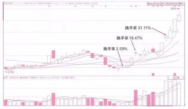考量个股盘面活跃度时需要借助换手率来进行判断。有些个股换手率很低,但是股价始终会上涨,这样的盘面特征表示有中长期主力运作,类似这样的个股就具备非常强的持续性,风险非常小。