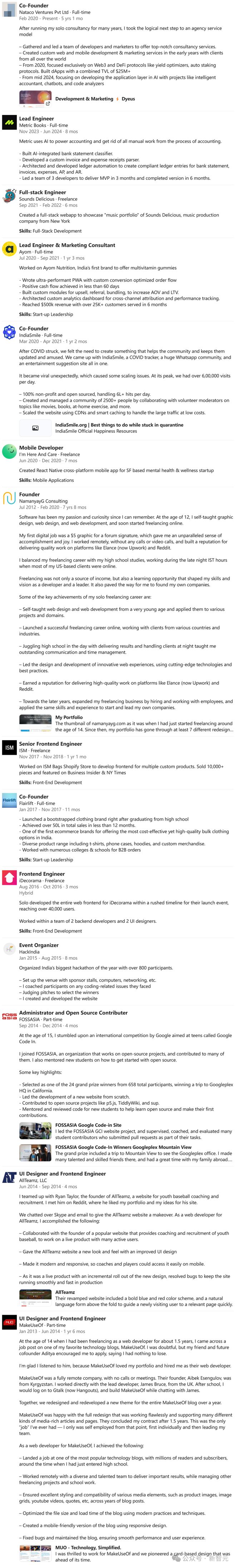 从九年级开始,他就在接外包做网站开发。14岁时,在MakeUseOf得到了人生第一份正式的开发工作。在那里待了一年半后,又继续独立接项目做了好几年。