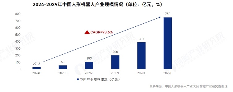 根据中国人形机器人产业大会披露的信息,2024年中国人形机器人市场规模约27.6亿元。对于整个人形机器人市场未来的发展,工信部2023年11月发布的《人形机器人创新发展指导意见》中明确,到2027年,产业加速实现规模化发展,应用场景更加丰富,相关产品深度融入实体经济,成为重要的经济增长新引擎。