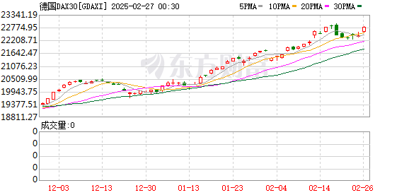 欧股市场:欧洲三大股指当天全线上涨。英国伦敦股市《金融时报》100种股票平均价格指数26日报收于8731.46点,比前一交易日上涨62.79点,涨幅为0.72%。法国巴黎股市CAC40指数报收于8143.92点,比前一交易日上涨92.85点,涨幅为1.15%;德国法兰克福股市DAX指数报收于22794.11点,比前一交易日上涨383.84点,涨幅为1.71%。