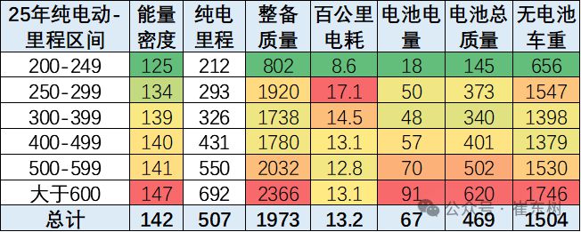 纯电动乘用车的续航里程相对稳定。2025年高于600公里的续航里程的产品数量持续提升,技术提升明显。