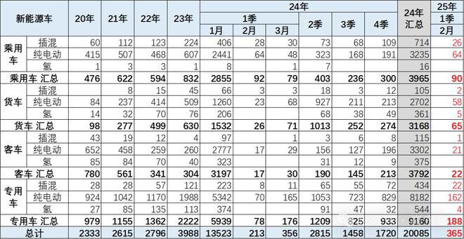 2025年中乘用车90款,纯电动较多,插混近期爆发增长。客车22款,纯电动保持绝对主力,插混稍有恢复。专用车188款,其中的纯电动是绝对主力,而氢燃料4款。