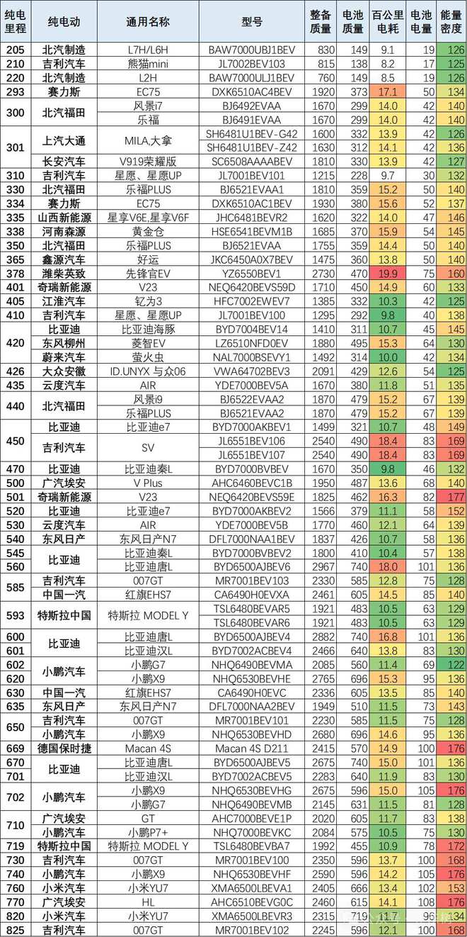 300公里以上的车型的电耗基本是在13度左右,长续航的耗电增加不明显。续航400公里以上的电池能量密度也在140以上水平。