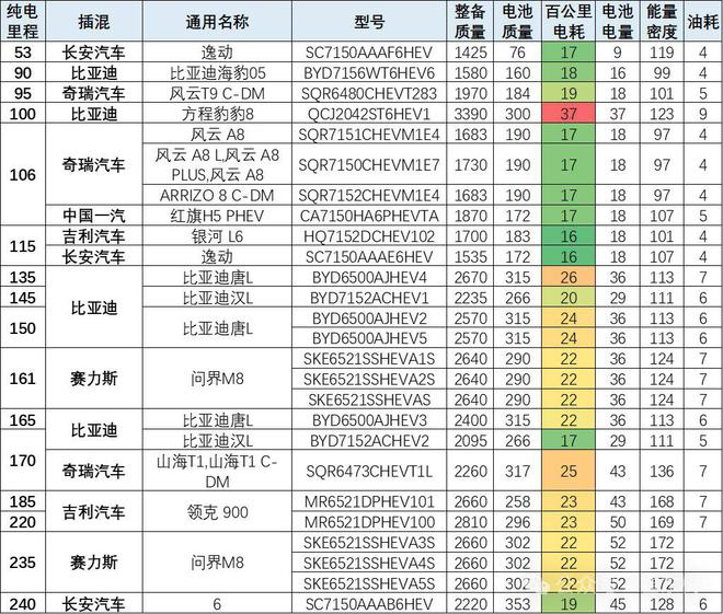 长安、奇瑞、比亚迪、吉利等自主品牌的插混表现很好。比亚迪汉L等部分车型的插混电耗也降到20以下,表现很好。