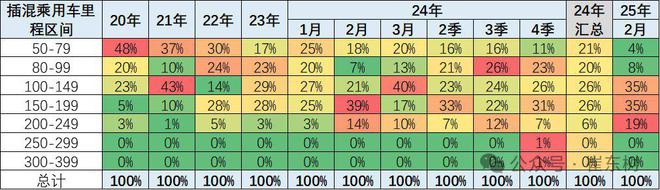 2025年1月的插混车型的里程相对较高,100-200公里为主,200公里以上的高续航的也有一些。