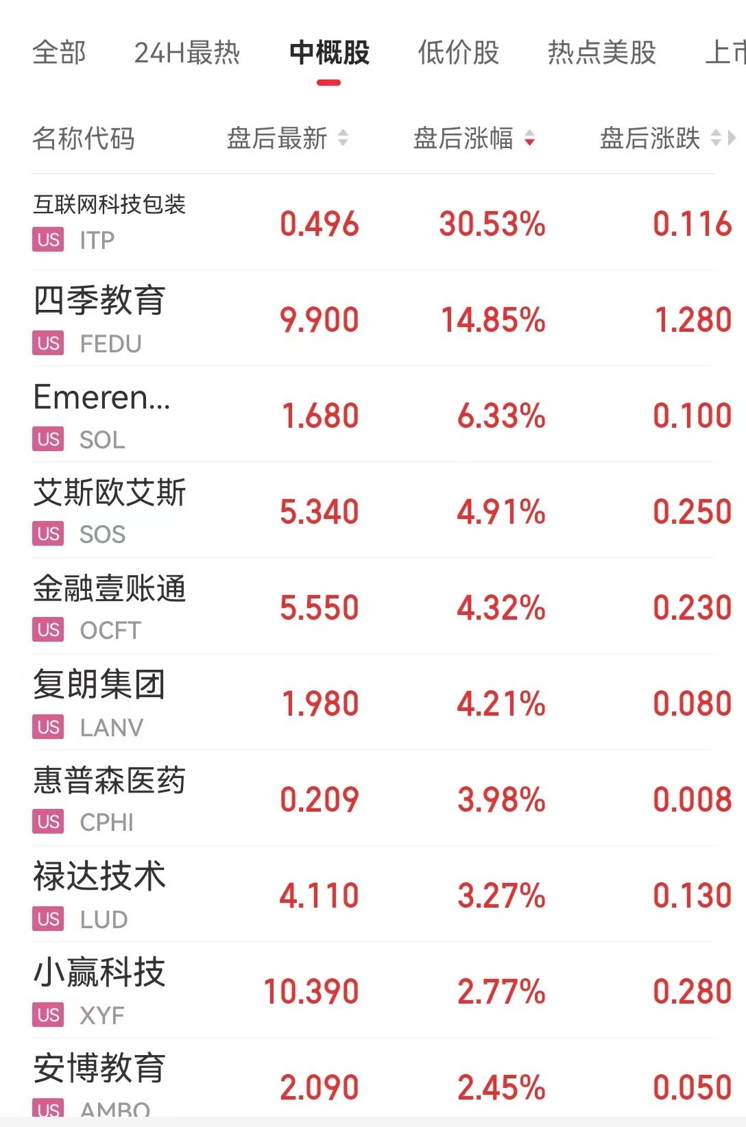 互联网科技包装涨30.53%,四季教育涨14.85%。