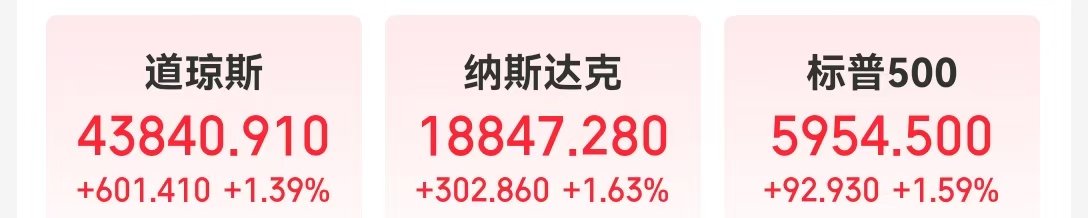 当地时间2月28日,美股三大指数集体收涨,道指上涨601.41点,涨幅1.39%;纳指涨1.63%;标普500指数涨1.58%。