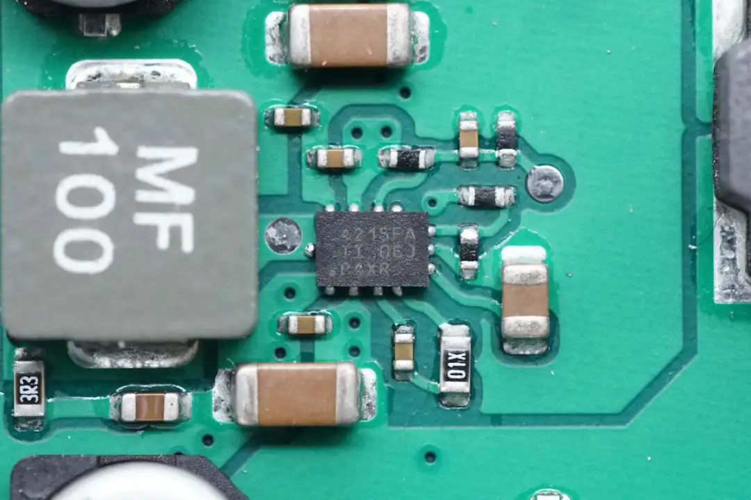 降压芯片来自TI德州仪器,丝印4215FA,型号LMR34215FA,是一颗汽车级的同步降压转换器,符合AEC-Q100标准,支持-40~125℃环境温度,支持42V输入电压,输出电流为1.5A,芯片内部集成开关管,采用VQFN-HR封装。