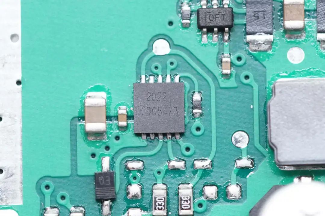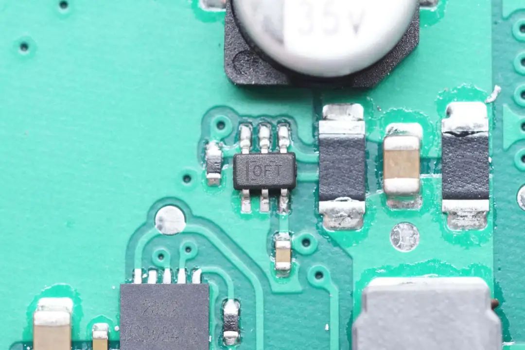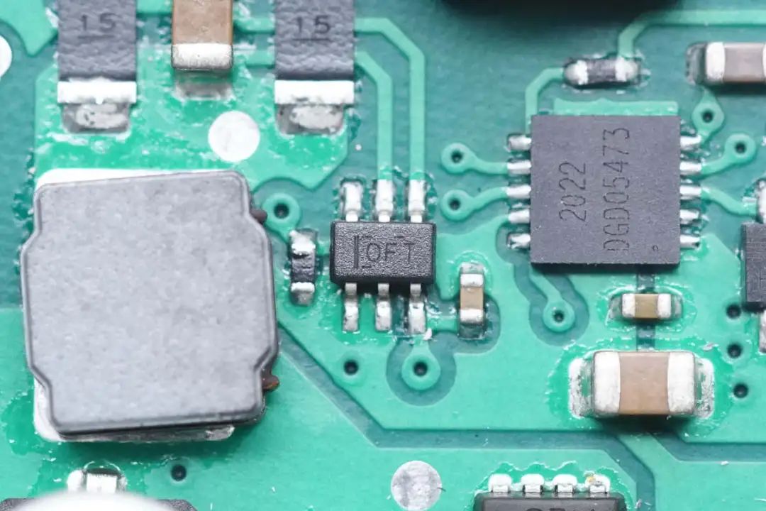 电流采样放大器来自TI德州仪器,丝印OFT,型号为INA214-Q1,是一颗汽车级双向电流检测器,支持高侧或低侧测量,符合AEC-Q100标准。芯片支持26V输入电压,支持-40~125℃工作温度,采用SC70封装。