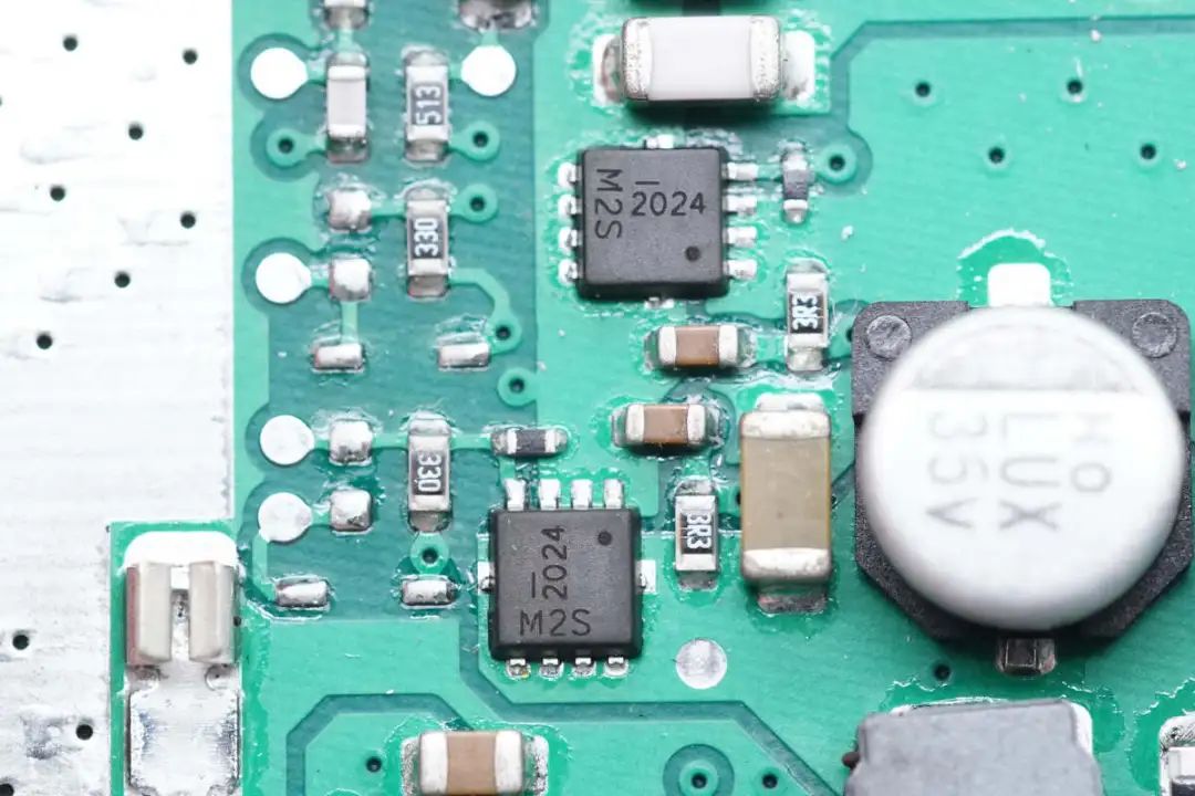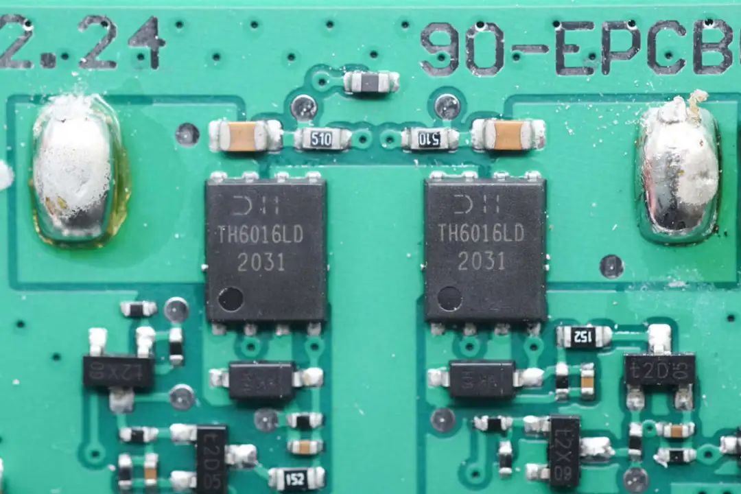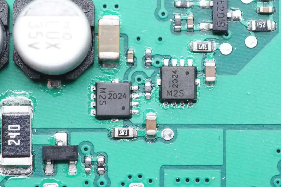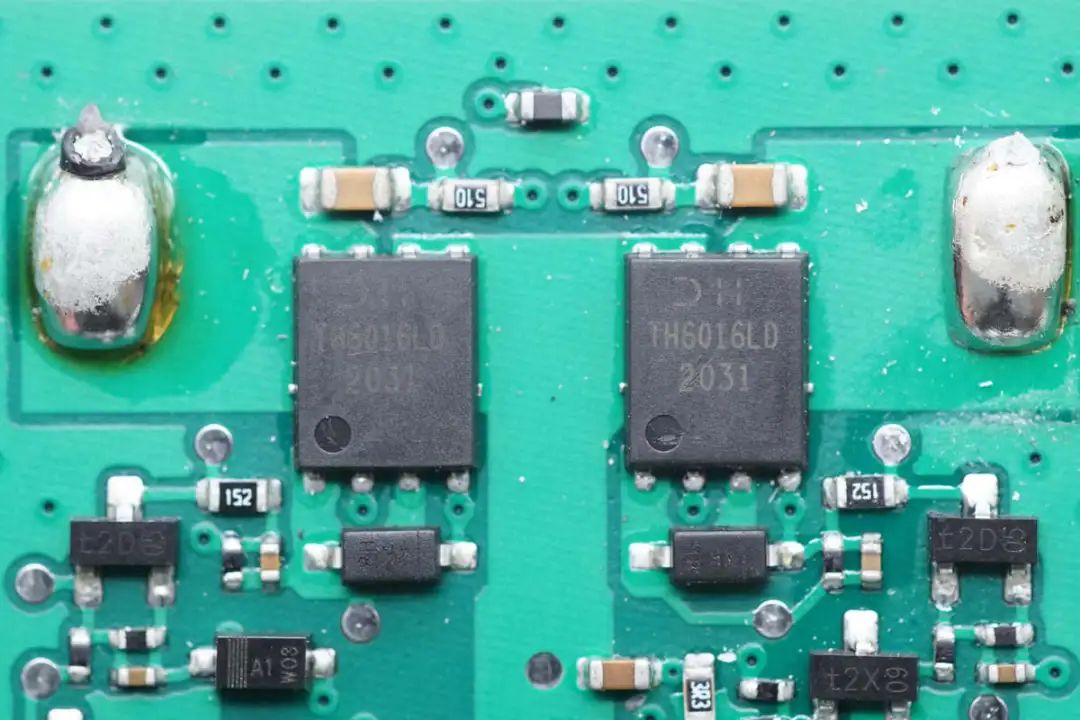用于切换线圈的两颗双MOS管特写。