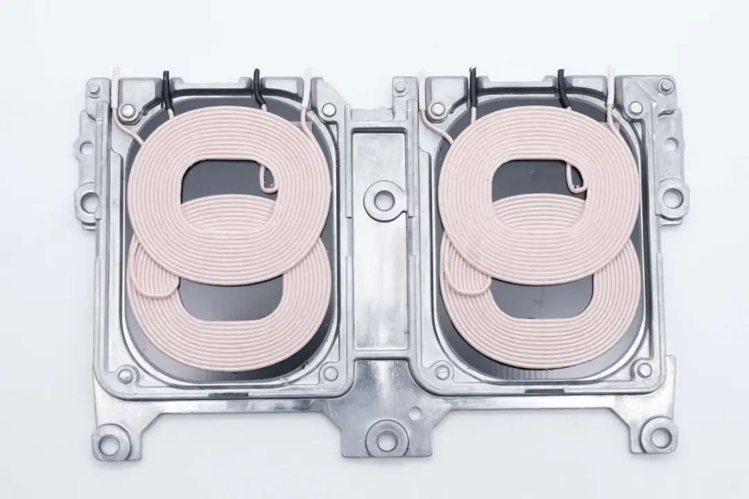无线充电线圈为双线圈叠放,增大无线充电面积。