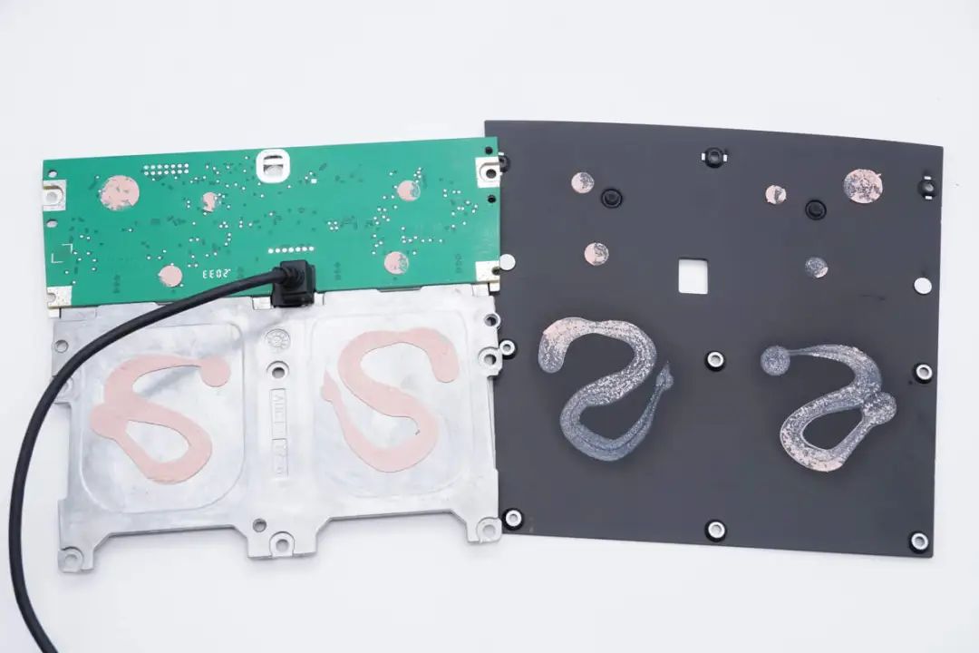 分离取下无线充电PCBA模块和线圈,与后盖之间涂有导热凝胶。