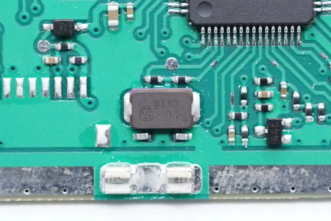 芯片外置8.000MHz时钟晶振特写。